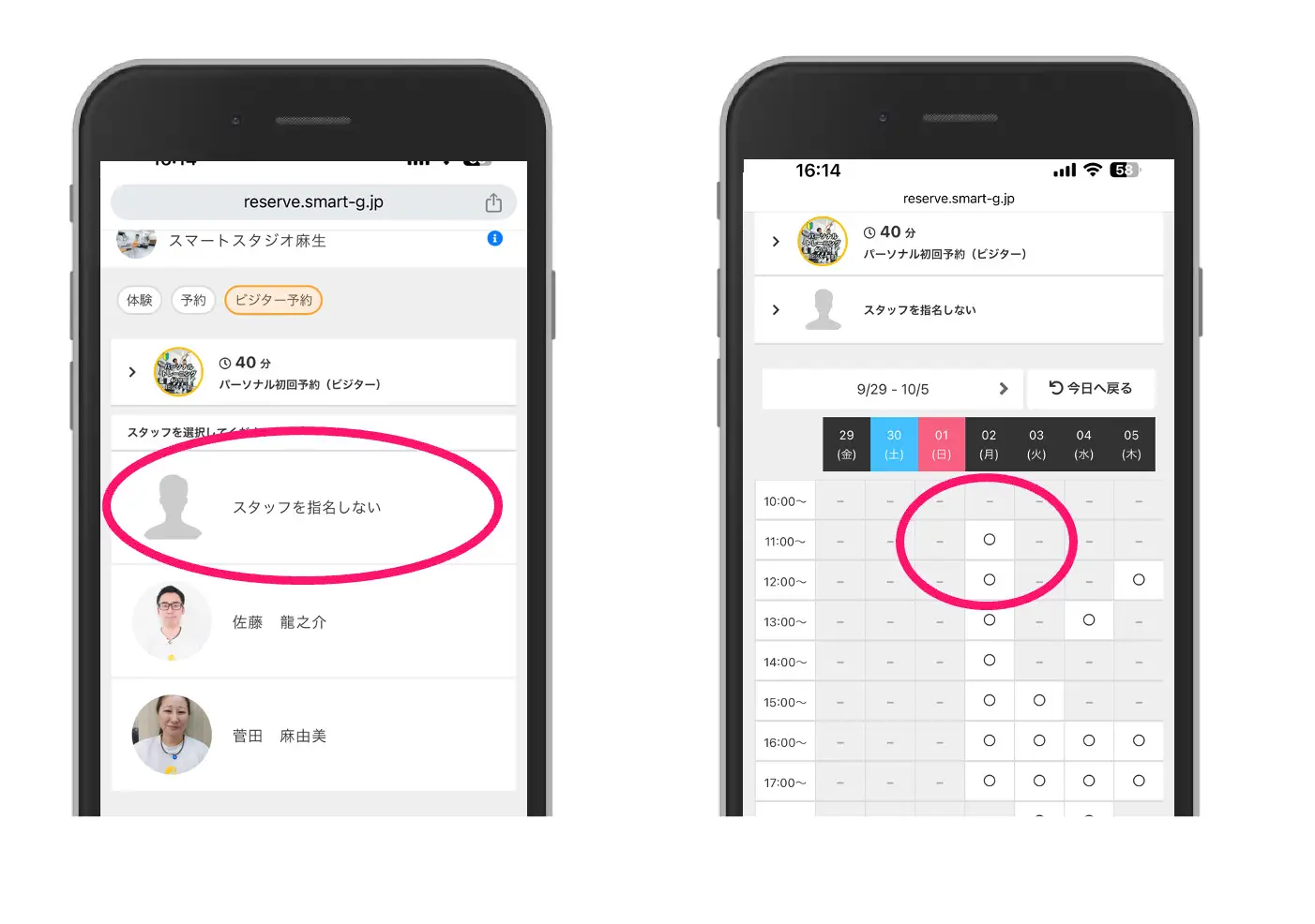 3)希望するスタッフを選ぶか「指名しない」を押す