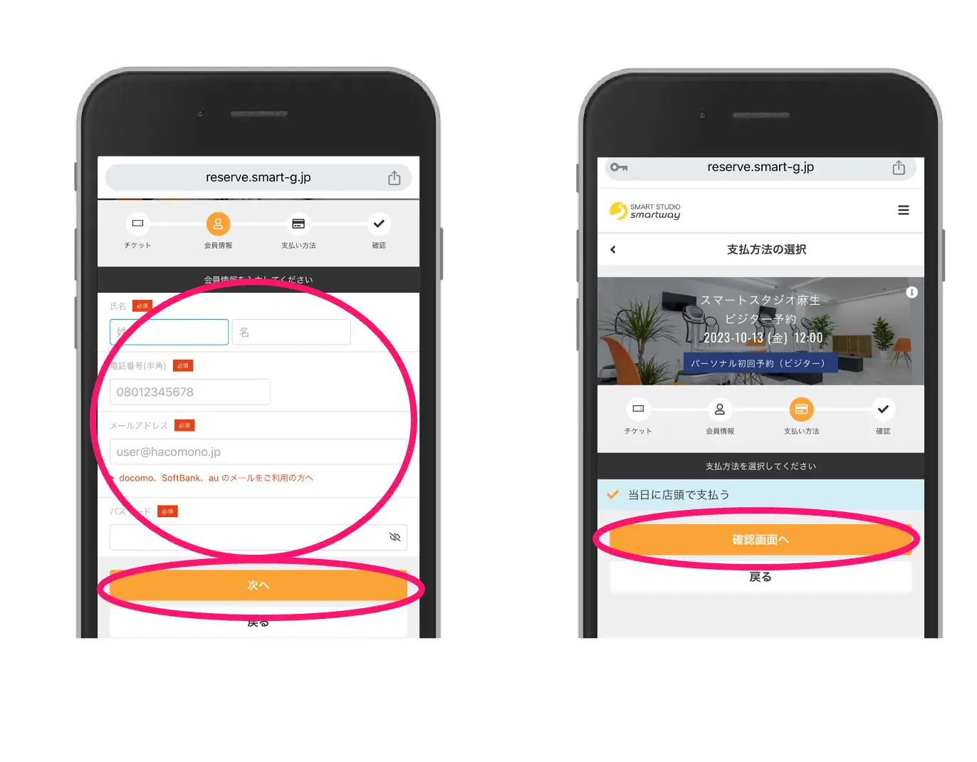 7)氏名・電話番号・メールアドレス・パスワードを入力し「次へ」を押す