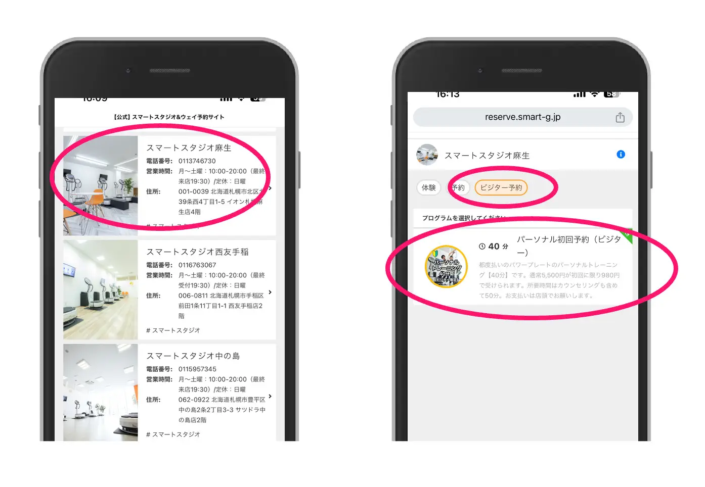 2)「ビジター予約」を選択し「パーソナル初回予約」をクリックする