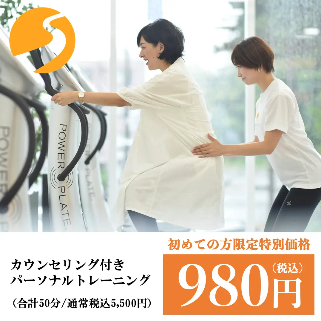 10月末まで、対象店舗各20名限定で、980円でパーソナルトレーニングを受けられます。スマートスタジオの利用が初めての方限定です。