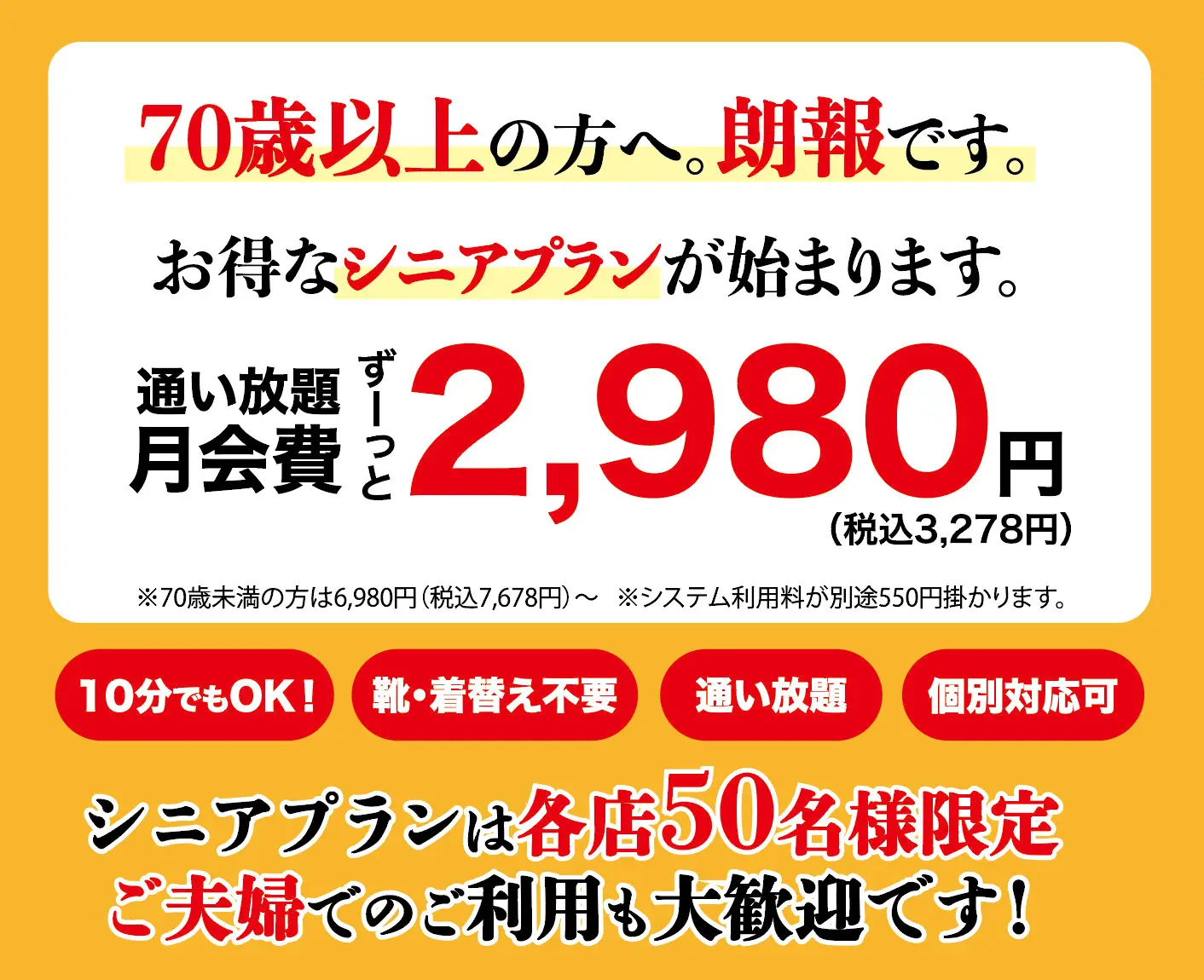 70歳以上の方の運動機会を増やすために、特別価格を設定させていただきました。